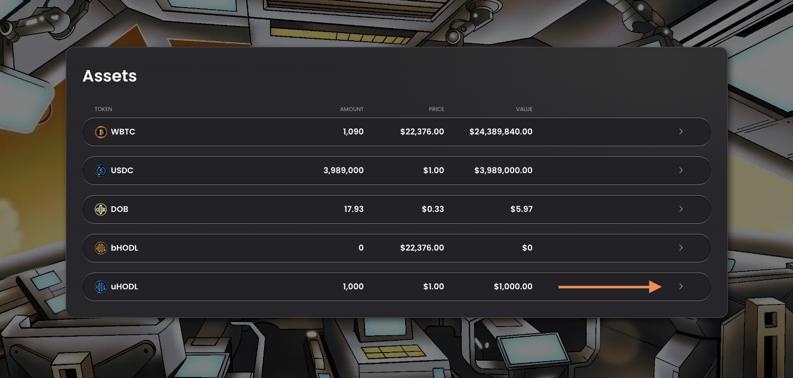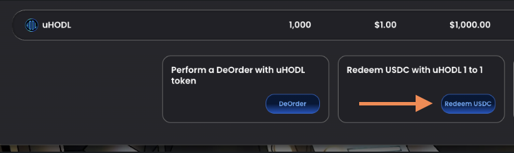 Redeem HODL for supported cryptocurrencies
