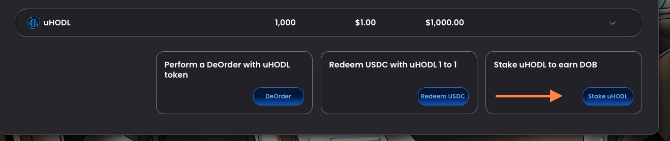 Besides using HODL tokens to place a DeOrder, users are able to start earning a basic APR in $DOB