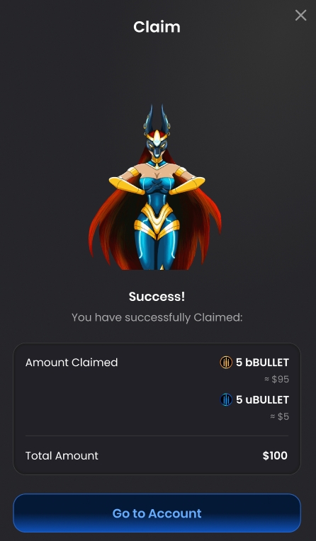 Once the transaction is processed successfully, you'll be shown a pop-up with the details of the BULLETs you were succesfully able to claim.